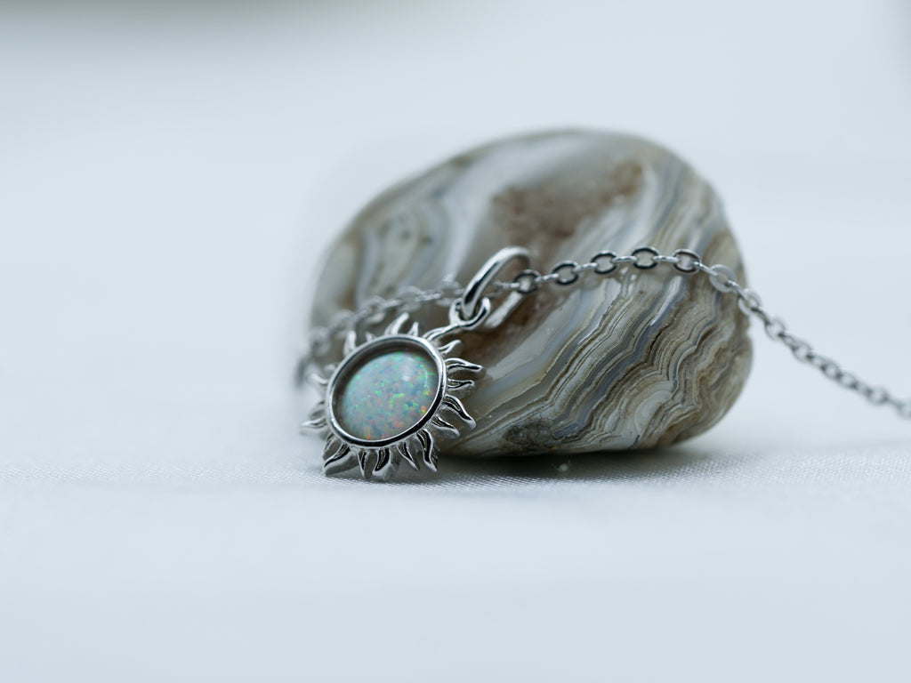 White Opal Sun Pendant Necklace – 925 Sterling Silver